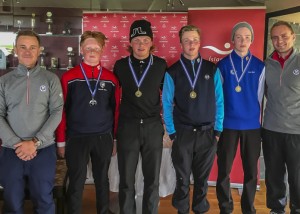 Frá vinstri: Jussi Pitkanen afreksstjóri GSÍ, Sigurður Arnar (2. sæti); sigurvegarinn Kristófer Karl, Lárus Ingi og Aron Emil  T-3, og Sigurður Pétur Oddsson mótastjóri GSÍ. Mynd: GSÍ