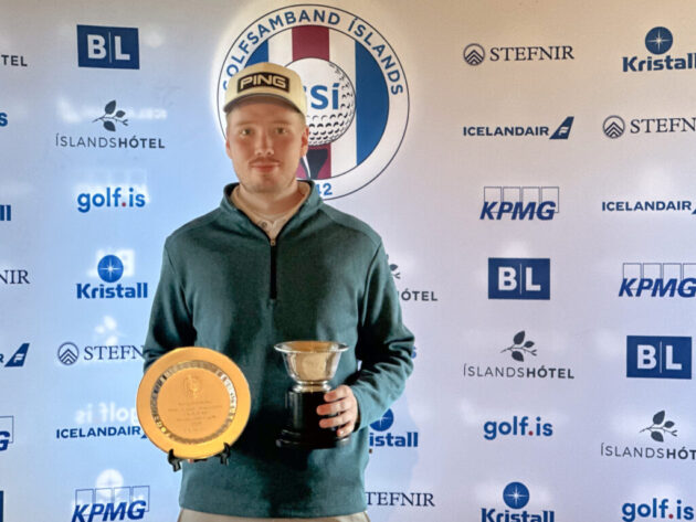 Aron Emil Gunnarsson, GOS, var á lægst skori áhugakylfinga á Íslandsmótinu 2024 og fékk Björgvinsskálina í mótslok á Íslandsmótinu á Hólmsvelli í Leiru.