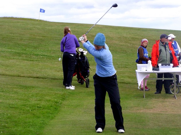Valdís Þóra átti slaka byrjun í dag fékk því miður skramba á 1. holu (6 högg á par-4 holuna) og skolla á 2. holu (4 högg á par-3 holuna).