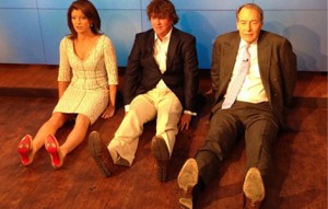 Charlie Rose og Norah O'Donnell  „dufnerrast" í CBS This Morning þættinum ásamt Dufner. Mynd: CBS