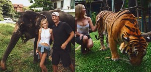 Johnsonarnir og ungfrú Gretzy skemmtu sér konunglega í Thaílandi og settu fullt af myndum af sér á félagsmiðlana (m.a. þær hér að ofan og enn ofar innan um Tiger-a og fíla – greinilega dýraelskt par).