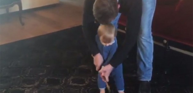 Kjút! Sonur DJ tekur pútterinn úr höndum Spieth!