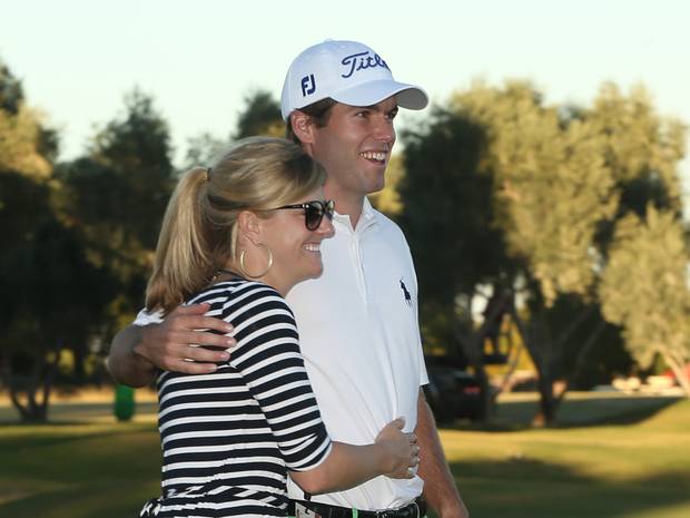 En það tókst og nú er hann að keppa í risamótinu en Kelly kona hans er í brúðkaupi systur sinnar.