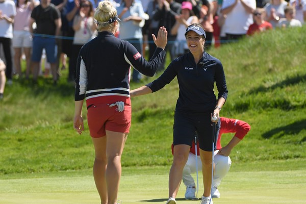 Aðalfréttagluggi: Charley Hull og Georgia Hall fagna. Mynd: Evróputúrinn