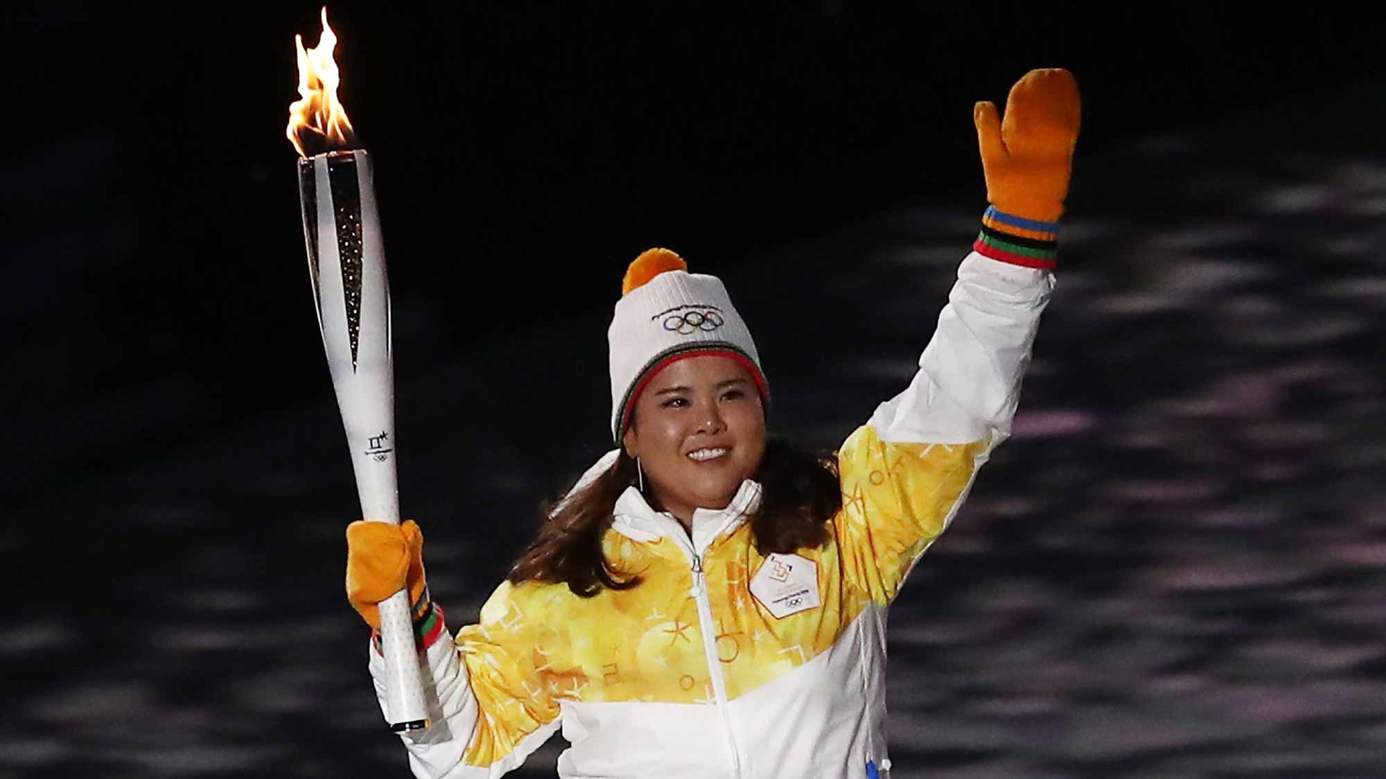 Skýringin á þessu er einföld. Park vann til gullverðlauna í Ríó 2016 á sumarleikunum (að vísu í golfi) og fékk því þann heiður að vera kyndilberi á vetrarólympíuleikunum.