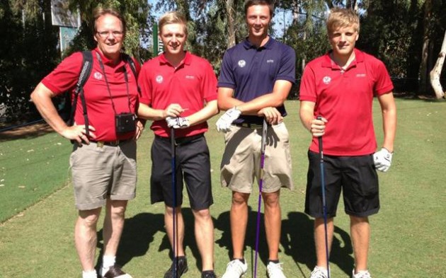 Haraldur Franklín er búin að spila best allra í liðinu er á 2 undir pari, þegar leik var frestað. Axel og Rúnar voru báðir á 3 yfir pari.