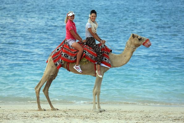 Í aðdraganda mótsins fóru hún og Michelle Wie á bak kameldýrsins, Nadiu, í gær í Jebel Ali Golf Resort and Spa.