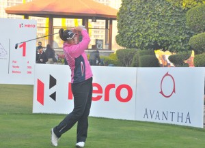 Besta hringinn í dag átti sú sem á titil að verja, sænski kylfingurinn Caroline Hedwall, sem jafnaði vallarmet karla á DLF Golf & Country Club í Nýju Delhi í dag. Caroline er í 3. sæti, aðeins 1 höggi á eftir forystukonunum þ.e á samtals 6 undir pari, 138 höggum (76 62).