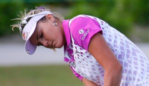 Lexi Thompson var mjög heit á fyrsta hring Coates Golf Championship í gær, miðvikudaginn 3. febrúar 2016. – hún púttaði með augun lokuð.  Grínlaust.