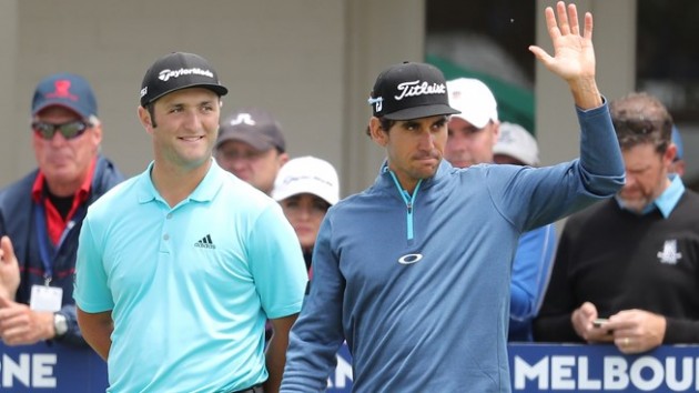 Það eru þeir Rafa Cabrera-Bello og Jon Rahm, m.ö.o. lið Spánar,  sem tekið hefir forystuna í heimsbikarnum.