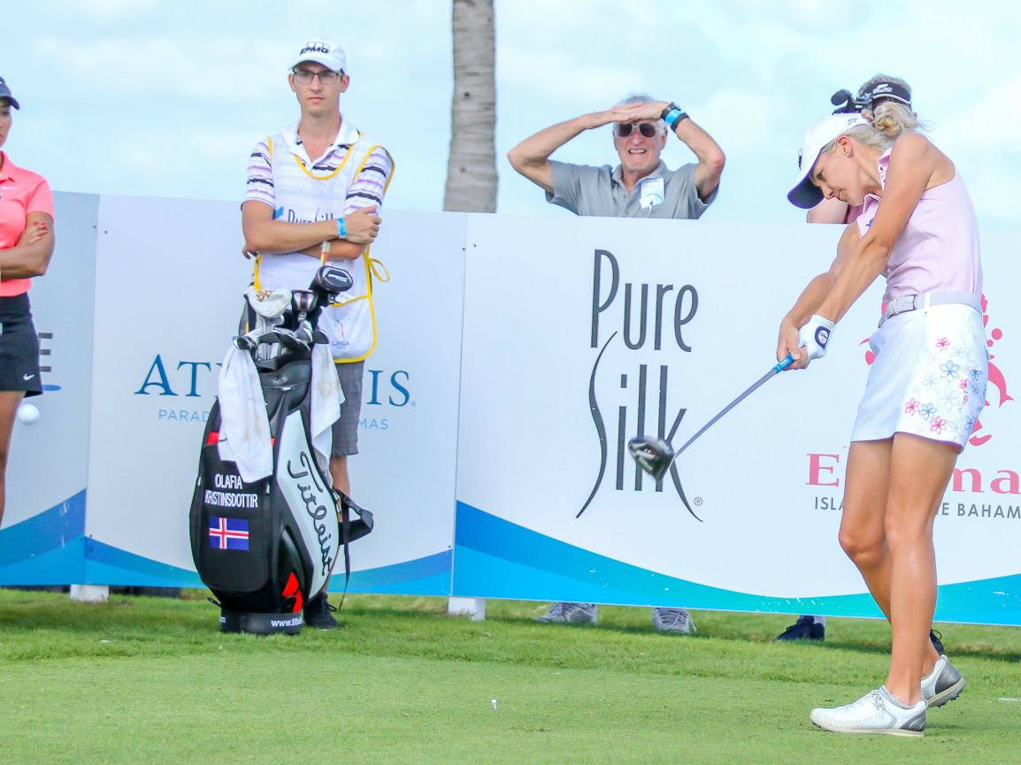 Það var svo margt sem fór úrskeiðis, var skrítinn í dag. Ég höndlaði þetta ágætlega þrátt fyrir mótlætið. Mér leið eins og Sherlock Holmes karakterinn í sjónvarpsþáttunum sem ég er að horfa mikið á. Hann er ofurnæmur á allt í kringum sig og ég leyfði því að gerast í dag. Það voru fuglarnir, fólkið í kringum mig og allskonar hlutir sem ég var með athyglina á af og til. Þetta er eitthvað sem ég þarf að fara betur í gegnum og læra af fyrir framhaldið,“ sagði Ólafía Þórunn Kristinsdóttir við golf.is á Ocean vellinum á Bahama-eyjum í gær.