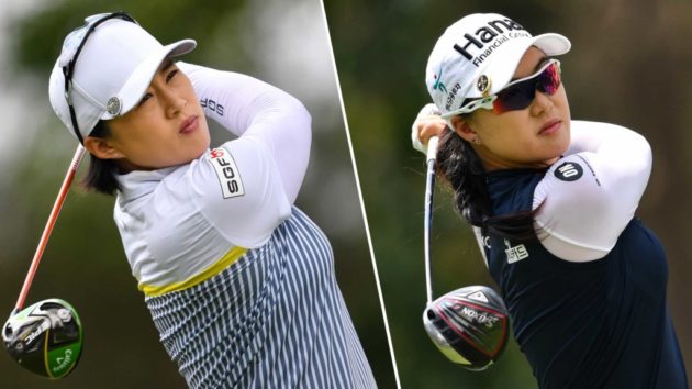 Aðalmyndagluggi: Amy Yang (t.v.) og Minjee Lee (t.h).