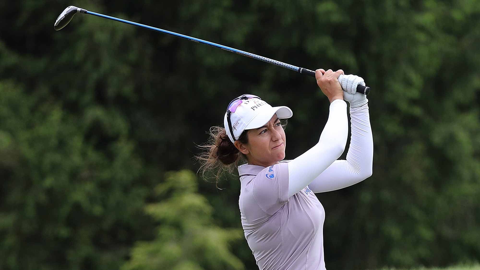 Það er hin bandaríska Marina Alex, sem er efst eftir 2. hringja spil á LPGA Volvik Championship í golfklúbbi Travis Pointe Country Club í Ann Arbor, Michigan.