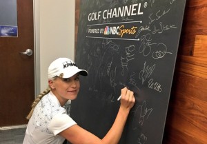 Þar sem um viðtal í höfuðstöðvum Morning Drive, Golf Channel var að ræða voru nýliðarnir látnir skrifa á töflu þeirra sem hafa verið í viðtali hjá Morning Drive – Sjá má Ólafíu árita töfluna hér að neðan: