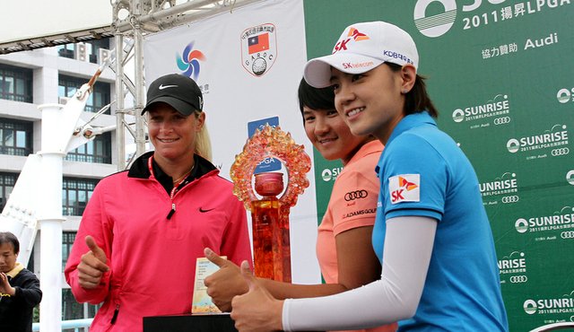 Röð svartra Audi bíla í lögreglufylgd stöðvaði umferð í mannmergðinni á götum Taipei, þegar nr. 1 í heiminum Yani Tseng var ekið á blaðamannafund fyrsta Sunrise LPGA Championship mótsins (sem hefst nú á fimmtudaginn í heimalandi Yani, Taíwan).  Með Taipei 101 – heimsins hæstu byggingu – í bakrunni þá héldu Yani og vinir hennar Suzann Pettersen og Na Yeon Choi ræður á fundi sem vafalaust var best sótti blaðamannafundur LPGA á árinu.