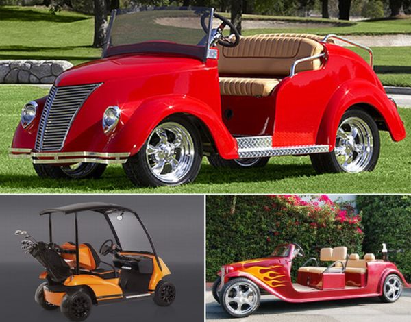 Ford Hot Rod Roadster golfbílnum má m.a. aka úti í umferðinni, en hann er löglegur í Bandaríkjunum til þeirra nota utan golfvallarins. Þessi bíll kostar um $ 12.000,- (þ.e. um 1,5 milljón íslenskra króna í Bandaríkjunum). Fallegur hárrauður liturinn og bílahönnun, sem sækir fyrirmyndir aftur í tímann sker sig líka úr í golfbílaflórunni. Sjá má kynningamyndskeið á Ford Hot Rod-inum með því að SMELLA HÉR: