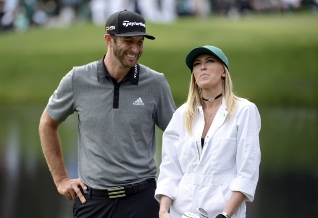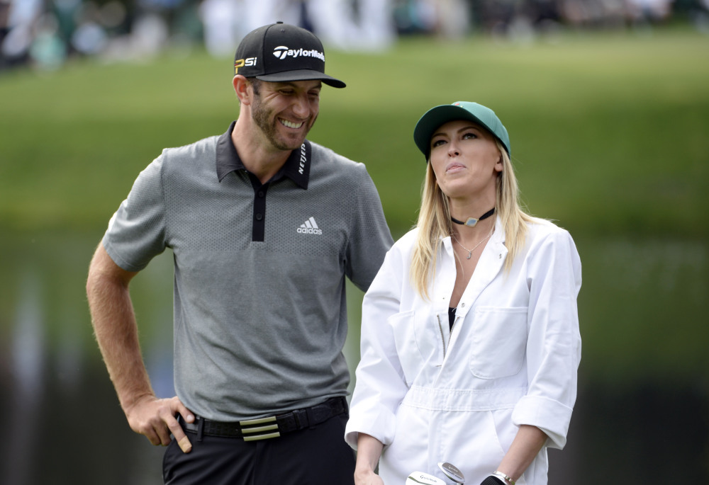 Í aðalmyndaglugga: Sigurvegari á Masters 2020, DJ og kylfusveinn hans í par-3 keppninni.