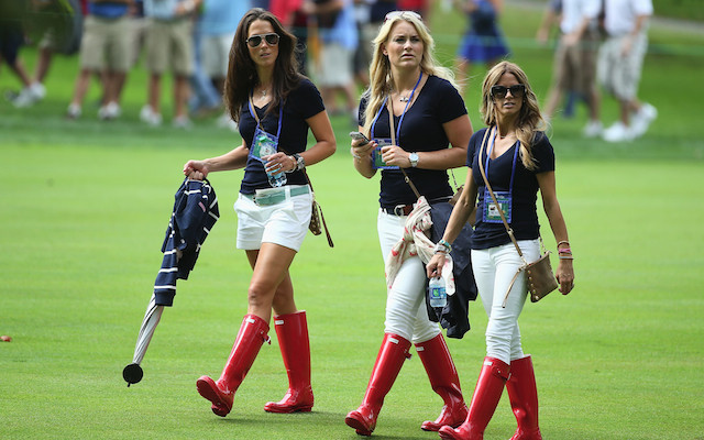 Konur og kærestur, ekki síður en kylfingar eru í eins búningum, á meðfylgjandi mynd má t.a.m. sjá konur og kærestur í fánalitum Bandaríkjanna, allar í samskonar rauðum gúmmístigvélum, hvítum buxum og bláum bolum eða jökkum.