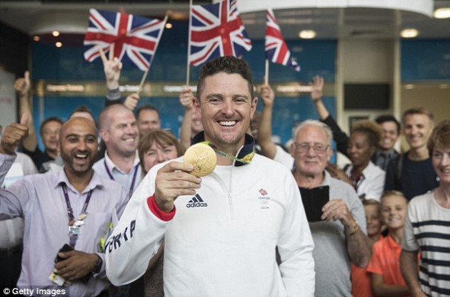 Rose er vinsæll og fjöldi manns var samankominn á flugvellinum að fagna fyrsta Ólympíugullinu í 112 ár í golfi …. og að það skuli hafa fallið Bretum í skaut.