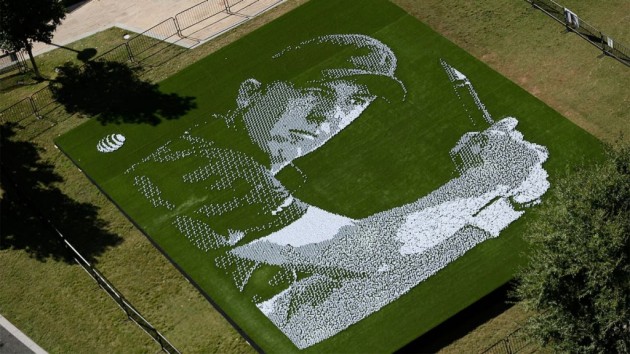 Og þar sem Spieth er í Texas varð þetta auðvitað að vera stórt.  AT&T réðu 25 manns til þess að búa til mósaíkmynd af Spieth úr 24.152 golfboltum sem allir standa á sínu eigin tíi.  Þessu hefir verið komið fyrir í heimabæ Spieth í Dallas í Main Street Garden