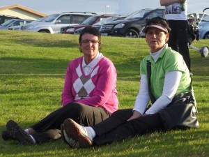 Jósefína, klúbbmeistari GKS 2011, (t.v.) slakar á í veðurblíðunni í Mosó ásamt Ólínu Þórey, GKS, (t.h.) eftir skemmtilegan golfhring. Mynd: Golf 1.
