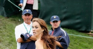 Þannig var Fred Couples fyrirliði liðs Bandaríkjanna einn þeirra sem virtist skemmta sér yfir uppátækinu a.m.k. virtist hann ekki kippa sér upp við konuna…. enda stuðningsmaður liðs hans ….