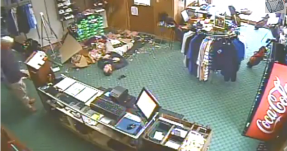 Náungi dettur inn í golfverslun… gegnum þakið – Myndskeið