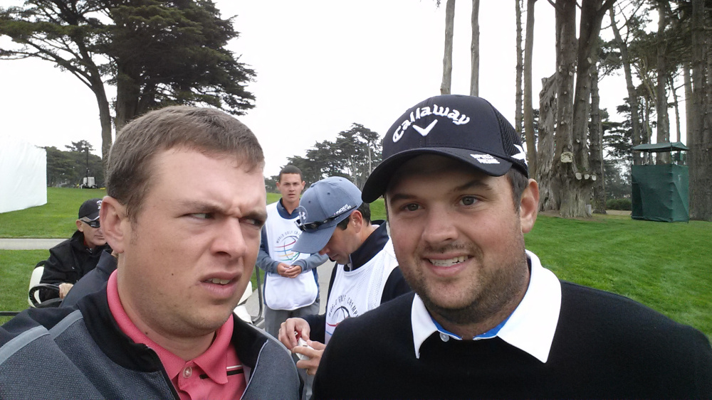 Eðlilega hefir fólk misjafnar skoðanir á Reed.  Sérstaklega þessi náungi á meðfylgjandi mynd sem náði hinu fullkomna „dislike selfie“ af sér og Reed á Cadillac heimsmótinu í holukeppni, sem nú stendur yfir.