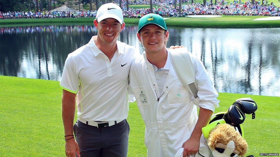 Hann dró m.a. fyrir Rory á Masters fyrir ári síðan og var hlegið að því þá að hann hefði tekið við hlutverki fyrrum kærustu Rory, Caroline Wozniacki, sem m.a. vakti athylgi á sér árinu þar áður fyrir að lita hárið á sér grænt.