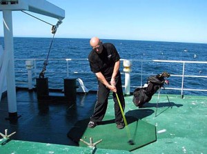 Þetta eru slæmar fréttir þegar haft er í huga að lúxusferðamenn skemmtiferðaskipa finnst fátt skemmtilegra en að slá golfboltum svo þúsundum skiptir í Atlantshafið, Miðjarðarhafið, Kyrrahafið, Karabíahafið og Indlandshaf svo fáein höf, sem eru vinsælar leiðir skipanna, séu talin. Jafnvel strákarnir á frystitogurunum hér á landi, s.s. á Vigra RE 71 eru með 1. flokks aðstöðu til golfæfinga og dúndra golfboltunum út í haf.