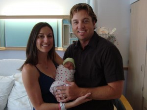 Steve LeBrun ásamt eiginkonu sínu og nýfæddu barni