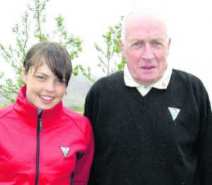 Valdís Þóra 16 ára ásamt afa sínum Alfreð Viktorssyni, margföldum Íslandsmeistara í golfi. Mynd: mbl