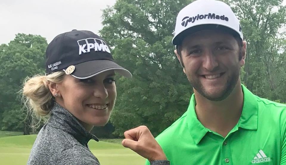 Ólafía spilaði síðan einnig nokkrar holur með Rahm.