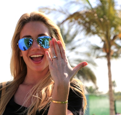 Spænski kylfingurinn Pablo Larrazabal trúlofaðist kærustu sinni til 4 ára (þ.e. síðan 2011) nú á dögunum.