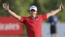Flestar fréttir í dag og gær virðast vera af nr. 1 á heimslistanum, Rory McIlroy. Hér er ein í viðbót. Rory fór seint að sofa í gær, sem hafði svolítið að gera með viðhafnaratburðinn sem Nike Golf stóð, fyrir þar sem opinberlega var tilkynnt um nýjasta liðsfélaga Nike, Rory. Á eftir viðburðinn í gær í Abu Dhabi sem líktist helst flottum útitónleikum, fór Rory upp á hótel og horfði langt fram á nótt kærestu sína, Caroline Wozniacki vinna fyrstu umferð sína í Australian Open, í þremur settum. „Henni finnst gaman að spila 3 sett,“ sagði syfjaður Rory í morgun í Abu Dhabi Golf Club. „Þetta er erfitt en mér fannst bara Lesa meira