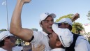 EVRÓPA SIGRAÐI!!!! Mögnuð Ryder bikarsvörn, sem á sér fáa líka og það á útivelli …. og það var Martin Kaymer sem innsiglaði sigurinn – sigurinn sem allir í frábæru liði Evrópu lögðu sitt af mörkum til !!!! Sögulegan sigur!!!!! Að koma tilbaka eftir að hafa verið undir 10-6 er ótrúlegt …. og hvatning og innblástur allra Seve Ballesteros!!! Olé, Olé; Olé Ollie….. Til þess að endurupplifa nokkra hápunkta gærkvöldsins í sigri Evrópu í Medinah SMELLIÐ HÉR: Til þess að sjá úrslitin á Ryder Cup 2012 SMELLIÐ HÉR: