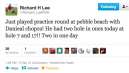Golf 1 hefir verið að kynna nýju strákana á PGA mótaröðinni 2012. Einn þeirra er nýliðinn Richard H. Lee, sjá kynningu Golf 1, með því að smella HÉR: Richard spilaði æfingahring í gær á Pebble Beach Golf Links með sænsk-indverska kylfingnum, Daniel Chopra, en nú í vikunni hefst AT&T Pebble Beach National Pro-Am. Chopra fór holu í höggi á 2 holum á einum og sama hringnum: þeirri 7. og þeirri 17, en báðar eru par-3. Richard twittaði um það sem hann sá og bætti við að sér fyndist hann heppinn að hafa fengið að vera vitni að afreki Chopra. Þetta eru tvær sögufrægustu par-3 holur á einum flottasta golfvelli heims, Pebble Lesa meira