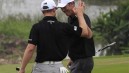 Ástralska liðið Brendan Jones og Richard Green luku leik í nótt á -11 undir pari, 61 höggi og er í forystu á Heimsbikarskeppninni 2 höggum á undan þeim sem sigurstranglegastir þykja, þ.e. þeim Rory McIlroy og Graeme McDowell. Liðið sem enginn bjóst við neinu af fékk 7 fugla og örn á agressívum hring á par-72 Blackstone golfvellinum á Mission Hills golfstaðnum á Hainan, eyju í Suður-Kína. „Við lékum mjög vel saman í dag. Brendan byrjaði mjög vel og okkur óx ásmeginn eftir það,“ sagði Green. „Þetta hjálpaði mér með leik minn á seinni 9. Ég var fær um að leggja mitt af mörkum þegar við fengum örninn á par-4, 16. Lesa meira