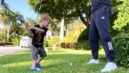 2 ára sonur DJ sýnir góða golftakta – Myndskeið