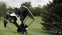Það er betra að vera ekki að flumbrast á golfbílum því þá getur illa farið. Sjá má hér að neðan myndskeið af stjórnlausum golfbíl. SMELLIÐ HÉR: