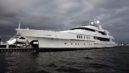 Snekkja Tiger við höfn skammt frá mótsstað PGA Championship