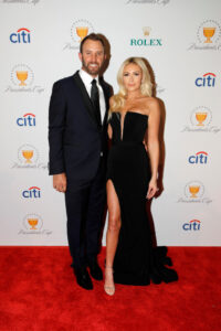 Paulina Gretzky (32 ára) barnsmóðir nr. 1 á heimslistanum, Dustin Johnson (37 ára) og kærasta hans frá árinu 2013 birti myndir af sér í apríl sl. þar sem hún skálar í kampavíni við tískuhönnuðinn Veru Wang og var að máta brúðarkjóla hjá henni. Sjá myndir hér að neðan