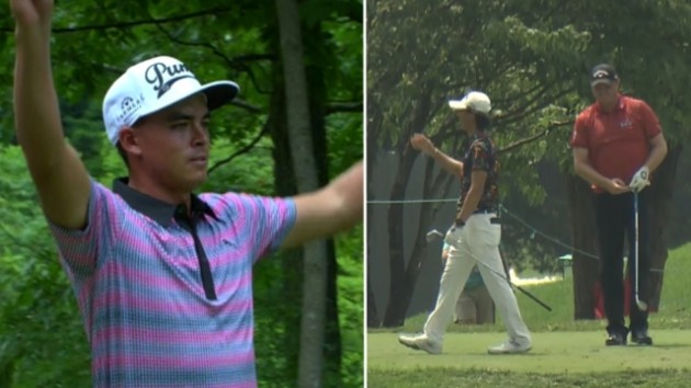 Rickie Fowler átti högg dagsins á PGA, á 1. hring Quicken Loans, en hann fór holu í höggi.