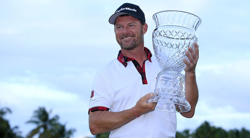 Hann fékk fugl á 4 fyrstu af 6 holum sínum og lauk lokahringnum á 3 undir pari, 69 höggum í mjög rigninga- og vinda- sömum skilyrðum á Trump International-Puerto Rico.