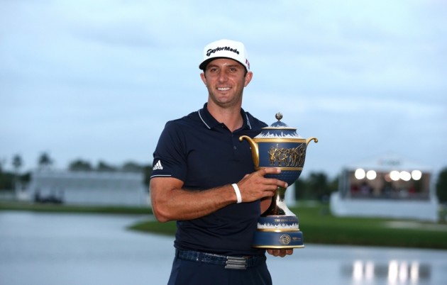 Hinn nýbakaði faðir Dustin Johnson (DJ) sigraði á Cadillac heimsmótinu á Bláa Skrímslinu, í Doral, Flórída.