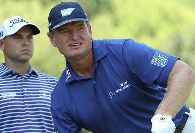 Það er Ernie Els, sem kominn er í 2. sæti á PGA mótinu Quicken Loans National.