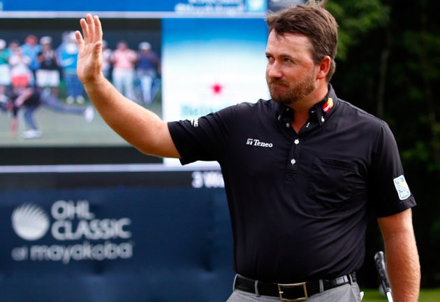 Par-4 18. hola golfvallar El Camaleon á Playa del Carmen var því spiluð aftur í bráðabana og var GMac á eini sem fékk fugl, Knox var á pari og Bohn átti ekki sjéns að jafna við GMac og því sigraði GMac.