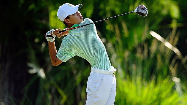 Þessi 14 ára kínverski strákur sem sló í gegn á Masters og síðan í New Orleans var með 2 skramba, 5 skolla 9 pör og 2 fugla á skorkortinu, eftir hvassan hring á golfvelli TPC Four Seasons.