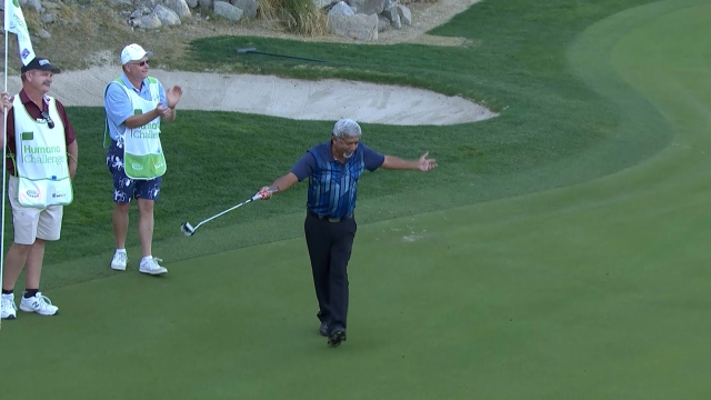 Á 2. hring Humana Challenge mótsins í Kaliforníu náðist myndskeið af miklu heppnishöggi á par-3 17. brautinni.
