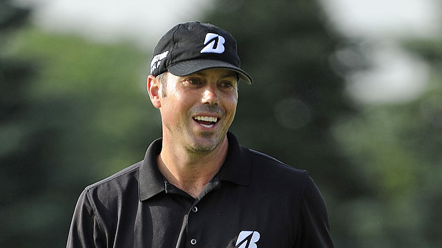 Það er bandaríski kylfingur og nr. 6 á heimslistanum Matt Kuchar sem leiðir þegar The Barclays mótið er hálfnað á Liberty National í New Jersey.